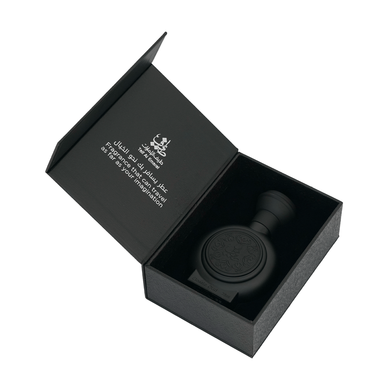 A fragrance where elegance meets mystery, it opens with the soft whisper of lily of the valley, unfolds into a heart of tropical florals wrapped in smoky oud and warm spices, and lingers on a base of creamy vanilla, golden amber, and rich woods.